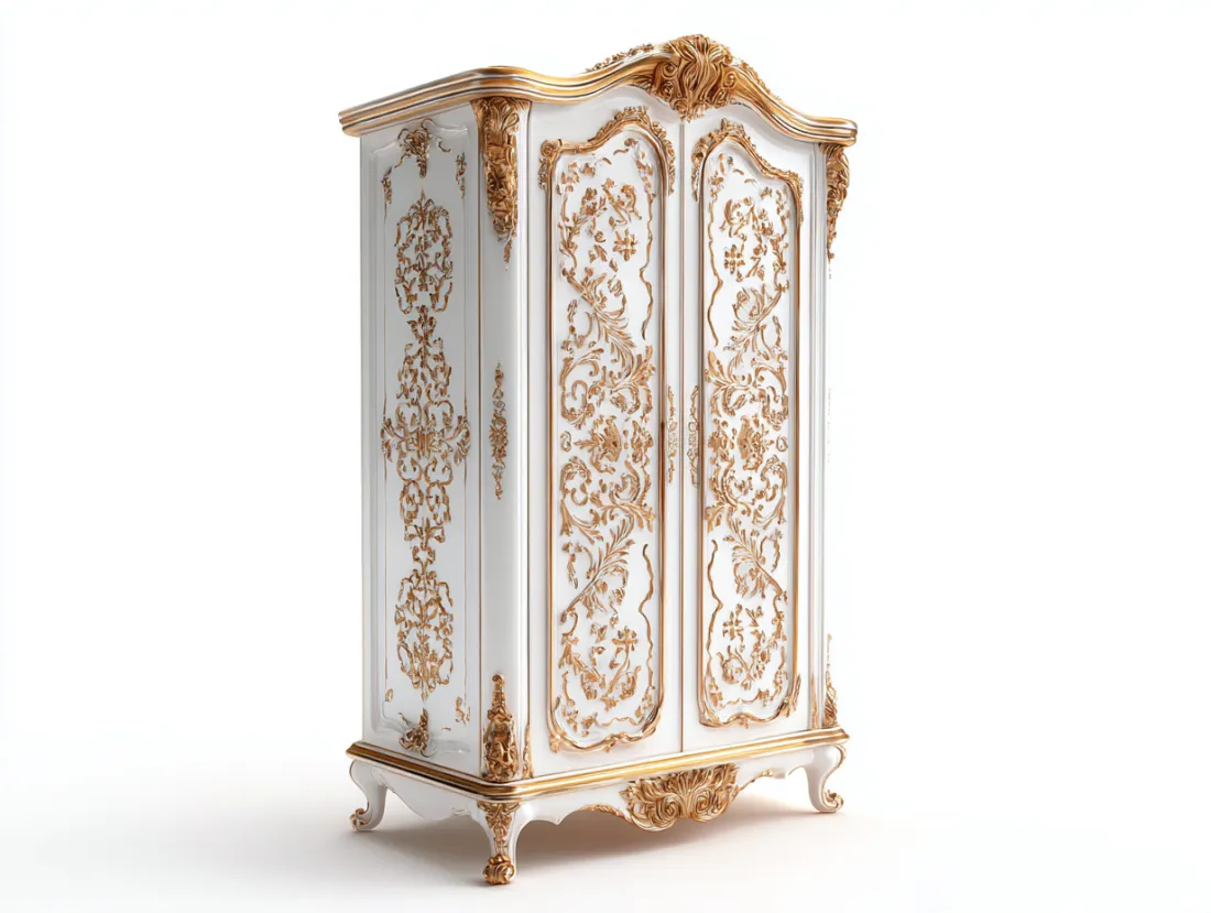 Armadio in legno con ante decorative 120x55x200 cm - bianco-oro - stile classico per camera da letto